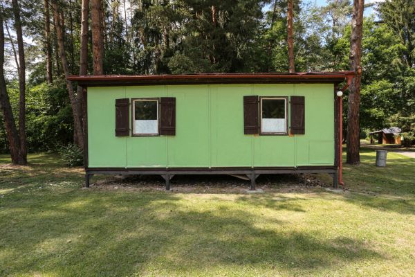 Malá táborová chatička určená na přespání. Sociální zařízení v kempu. Není elektrická zásuvka.
